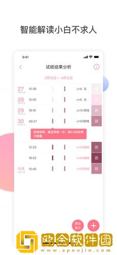 监测基础体温,分析月经周期,提示月经到来;支持记录宫颈粘液、异常信息、体重等,智能分析女性健康状况。