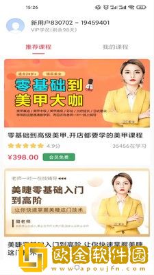 2、这里有推荐的课程、我的课程和其他功能供您分享,您可以通过手机直接了解它们;