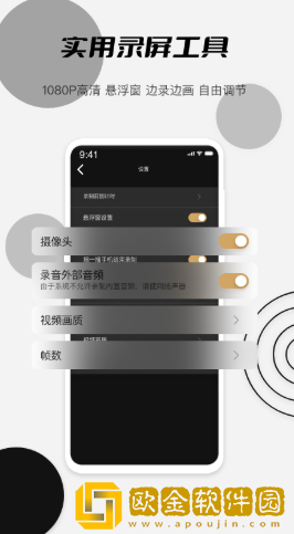 1、多种的录屏工具设置可以让用户进行选择,包括但不限于摄像头、录音外部音频、视频画质、或者是帧数等等的操作指数,自由的调节