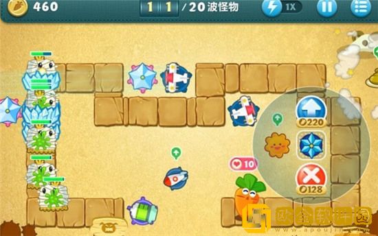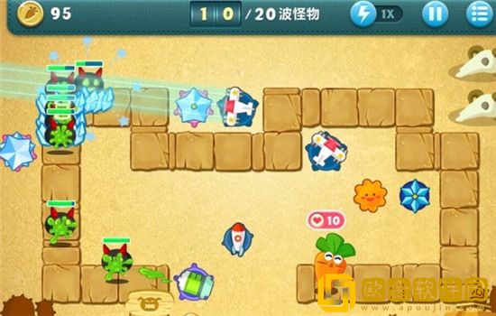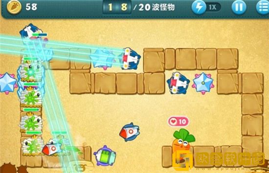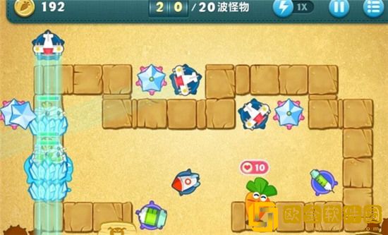 9、注意最后一波,敌人血量多难攻击,充分利用冰冻星减速,金萝卜通关。