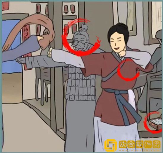 3、场景右滑,右下角有箱官银,佟湘玉身后还有个兵马俑,都是白展堂的犯罪证据。