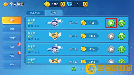 保存了本场* 局之后,大家就可以在“主界面-头像-信息-战绩”页面查看本局的录像了。