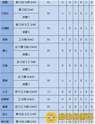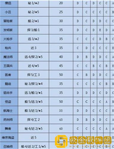 2.提督、大剑士、大海贼、贵族、魔人、忍者