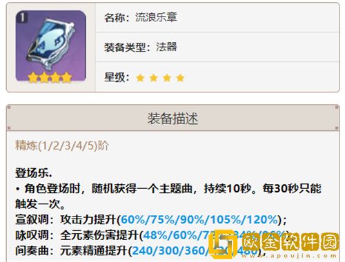 流浪乐章:由于流浪乐章独特的武器特效,非常适合速切莫娜的打法,并且流浪乐章高额的爆伤加成,还可以进一步减轻莫娜圣遗物的压力。