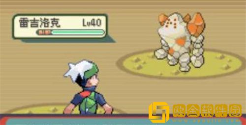 4、雷吉洛克:来到111号道路的沙漠,进入沙漠遗迹,从最上面石板左走2步,再向下走2步,然后使用HM06岩石粉碎,洞门就开了。雷吉洛克就呆呆的站在那里。