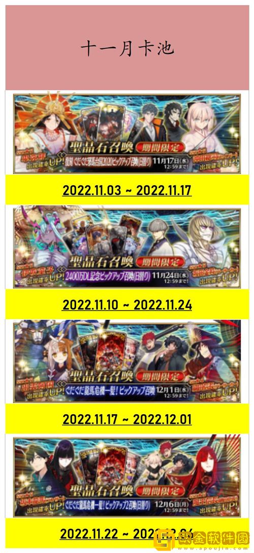 相信很多FGO玩家都想知道未来的卡池顺序,以便能够抽到自己心仪的从者。时间是对准日服的,卡池顺序大部分会比较准,想知道卡池时间表的玩家们就来和小编一起看看吧。