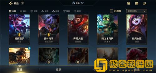 2、进入藏品页面之后玩家们只需要点击想要查看熟练度的英雄。