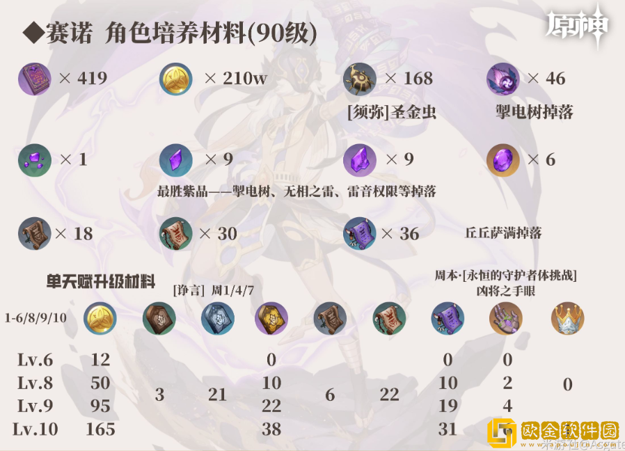 上面就是《原神》赛诺角色培养材料有哪些攻略的全部内容了,如果攻略有不正确的内容可以在评论区指出,小编会尽快修改攻略,为玩家提供正确的答案。