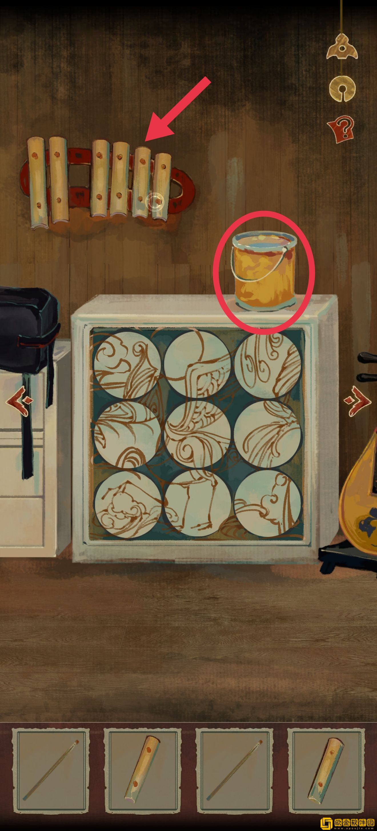 收集水桶,然后拼个拼图(忘记截完成图了,窍门就是对照边缘的固定图案)接着将木琴组装完成