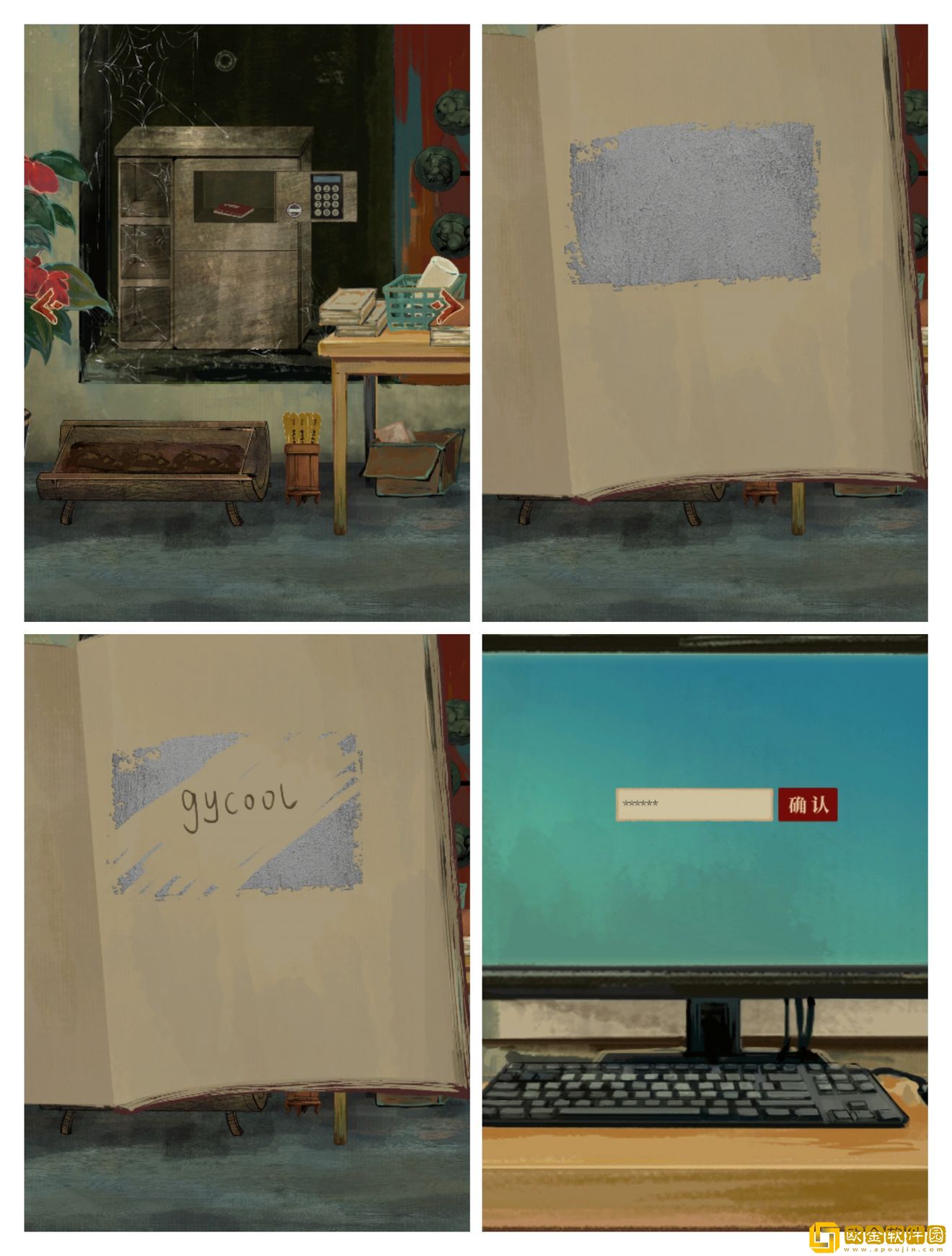 用钥匙打开柜子,这三本书都可以点开的,收集半张照片和红绿两张背诵纸
