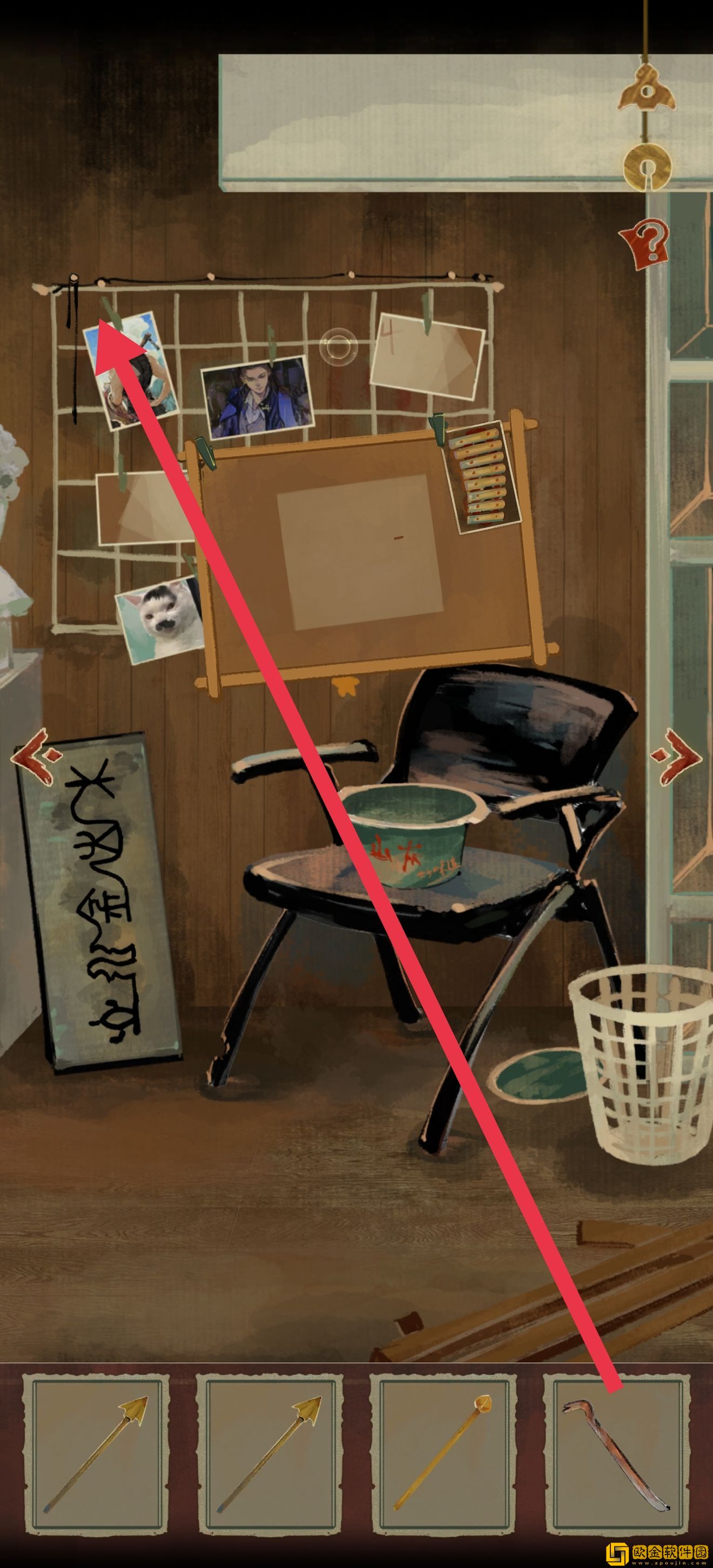 打开后获得一个起钉器,用在照片墙的绳子那里