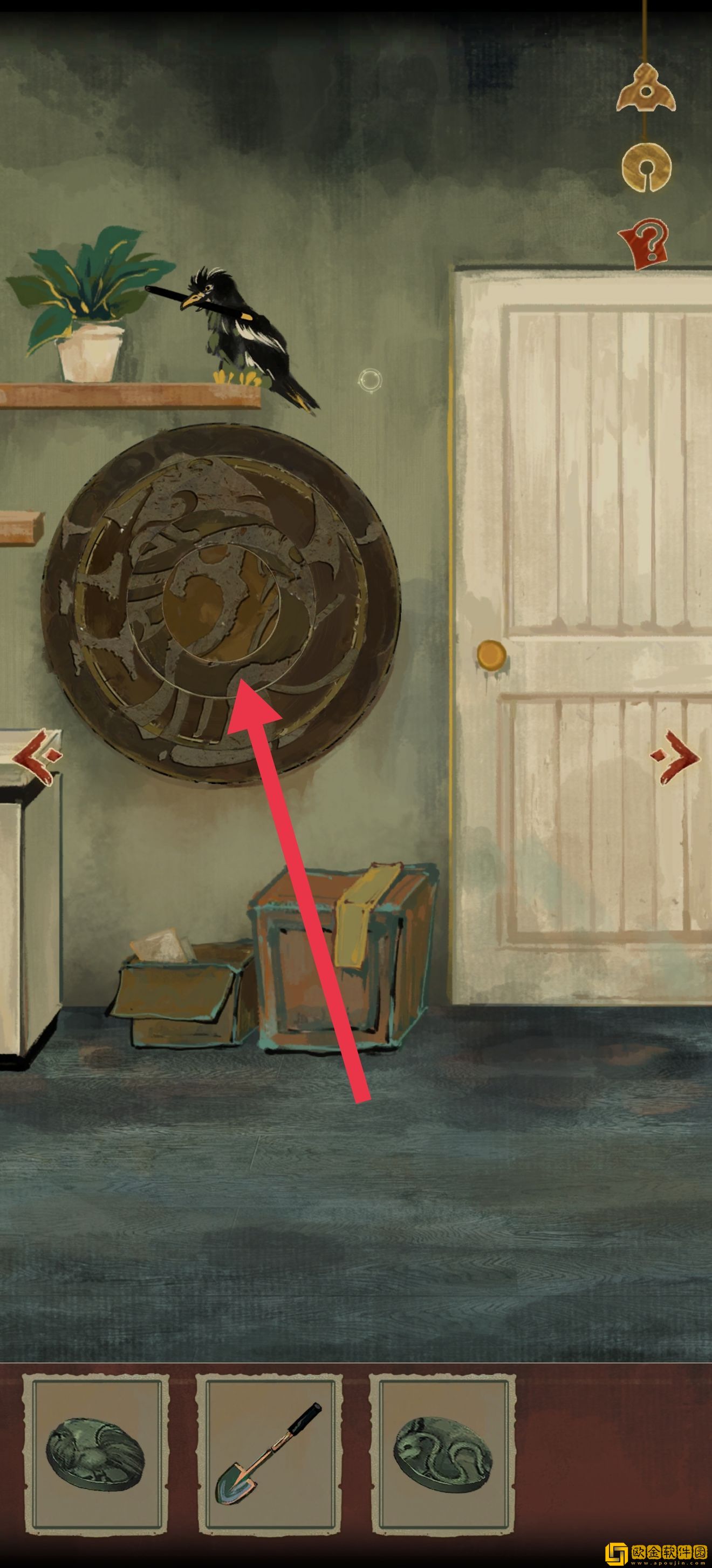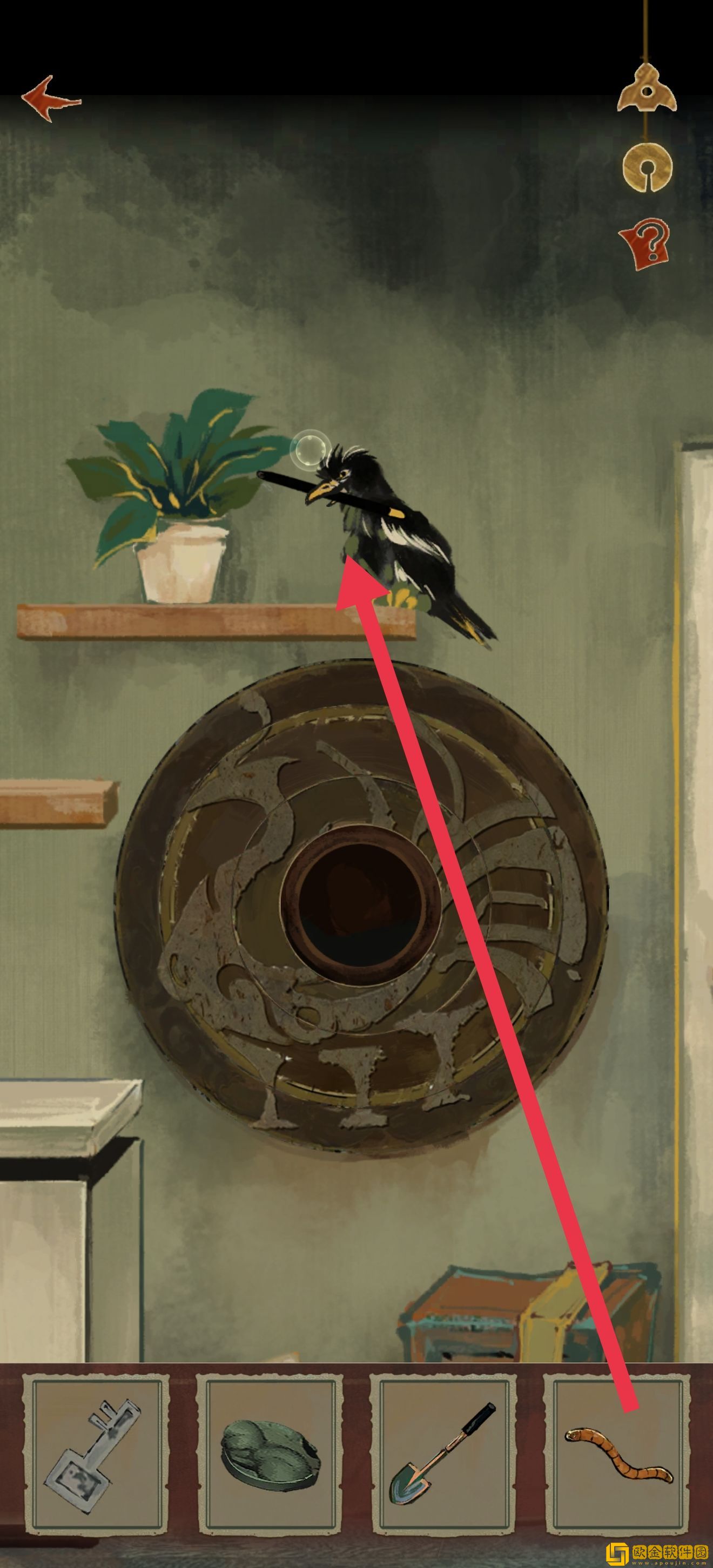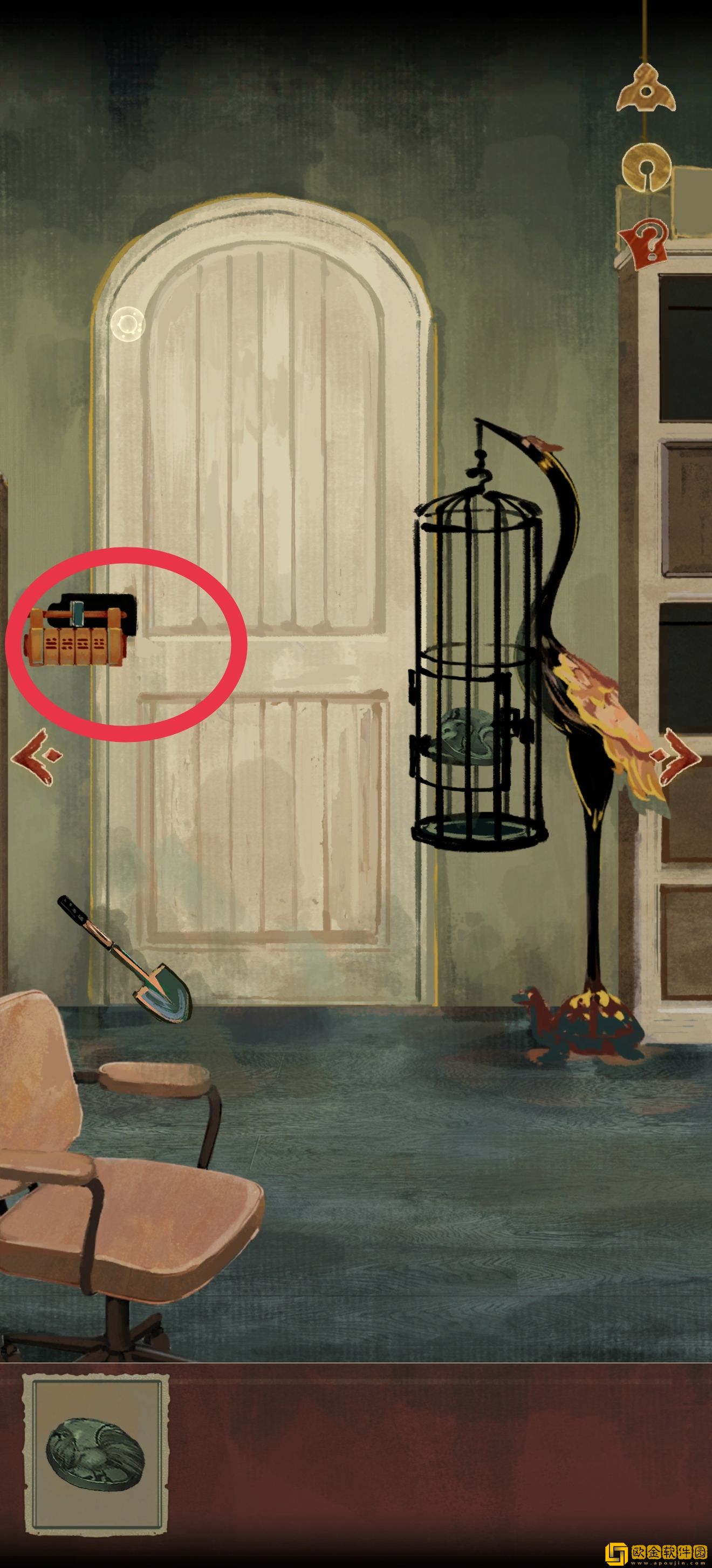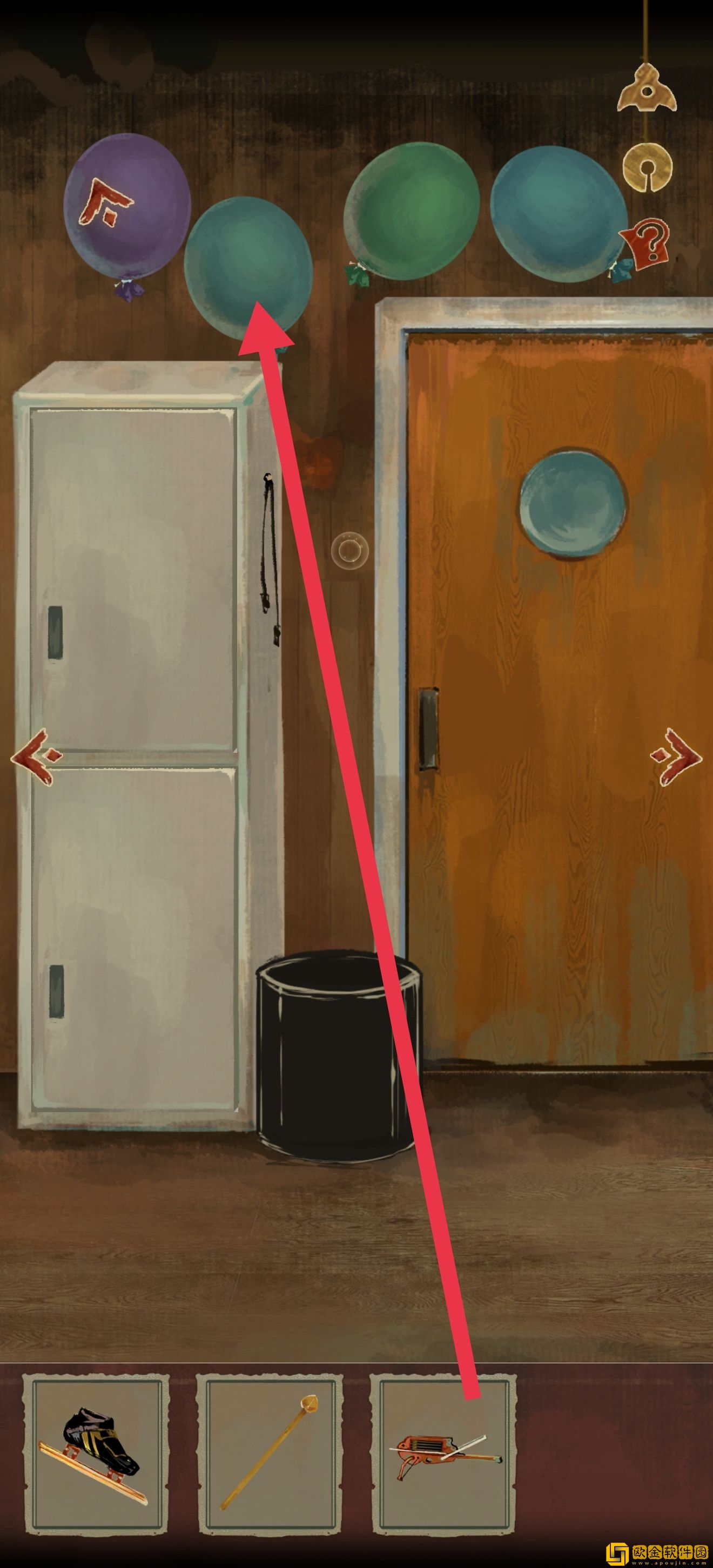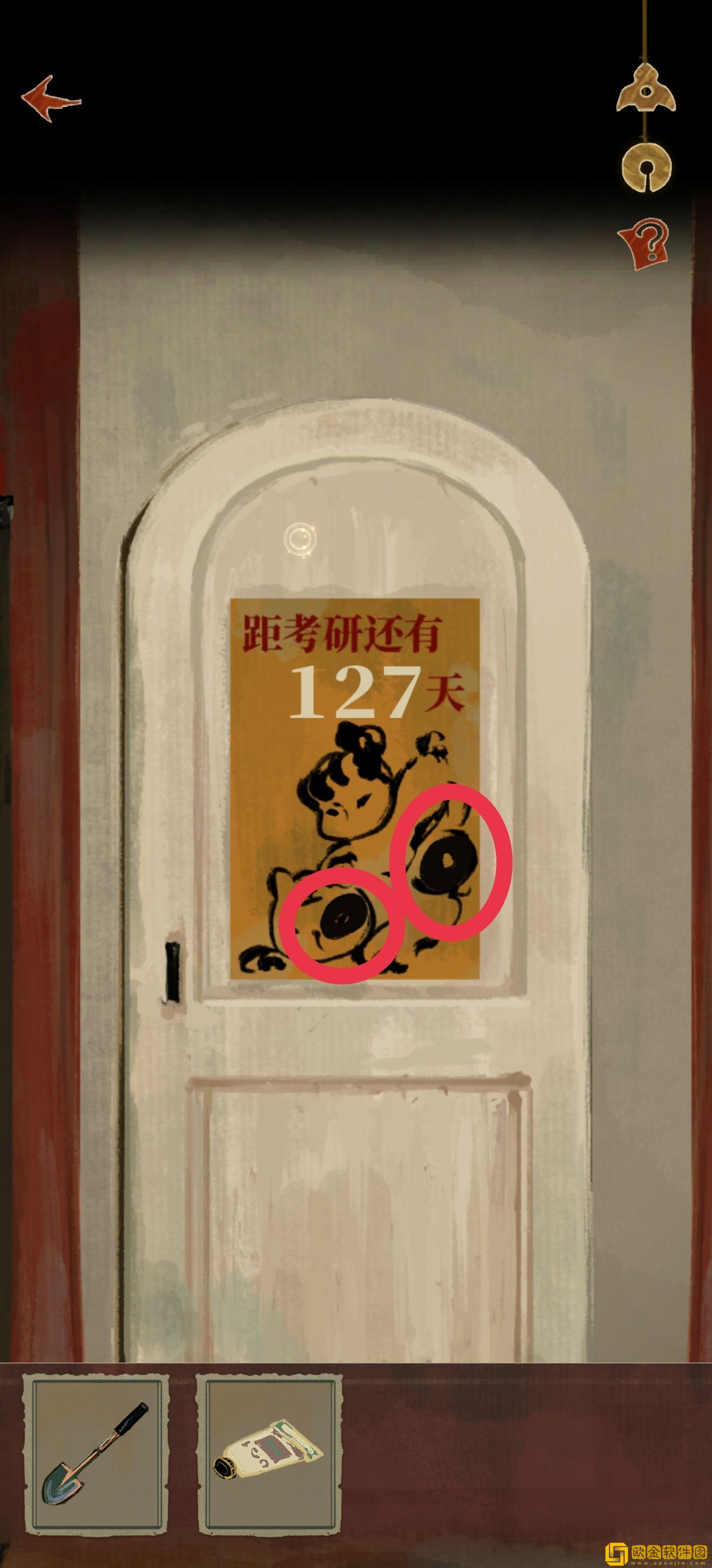 道具位置如图所示。注意右上角有个箭头,点进去以后可以收获xql(狗头)的一段打情骂俏,然后知道需要一个东西垫脚