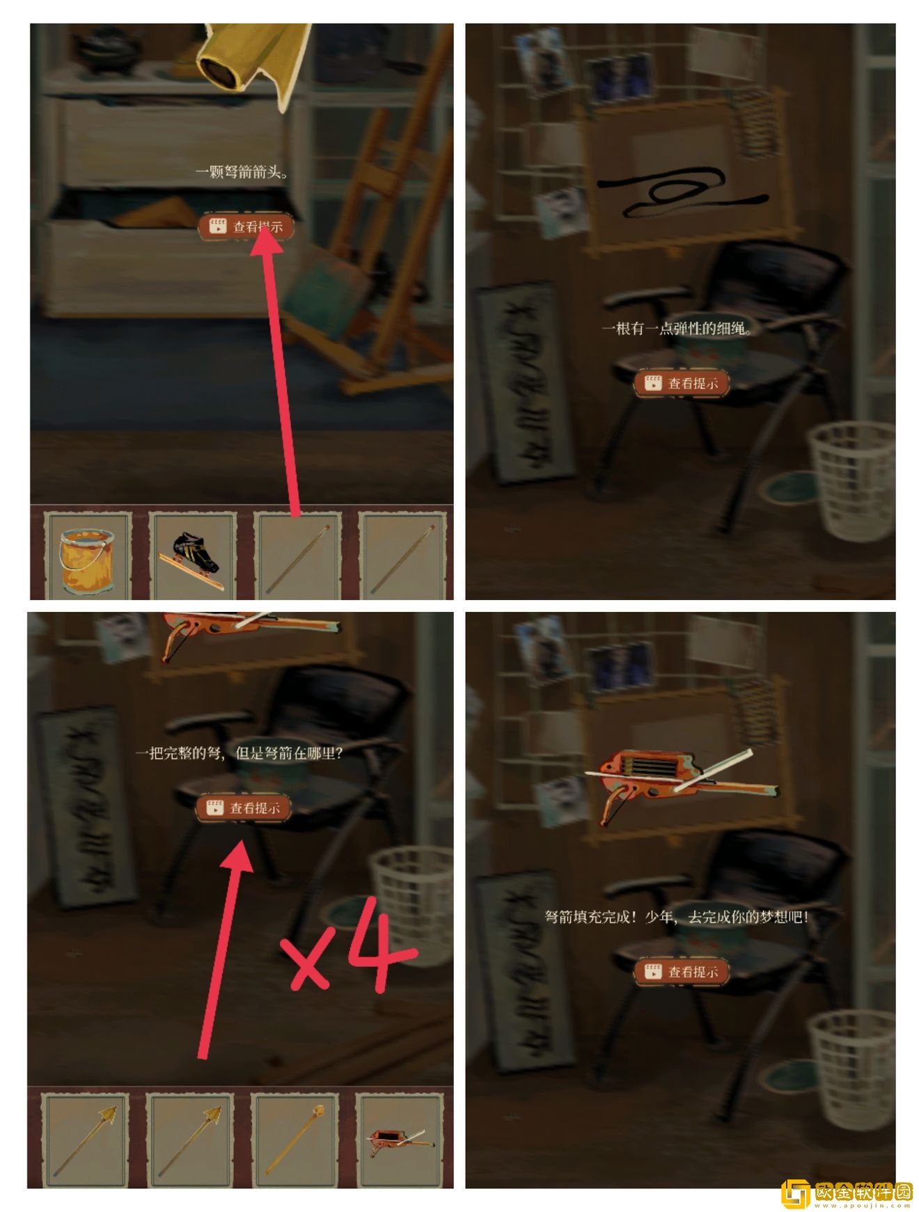 然后用弩箭去完成梦想(划掉)射气球,获得四张描红纸