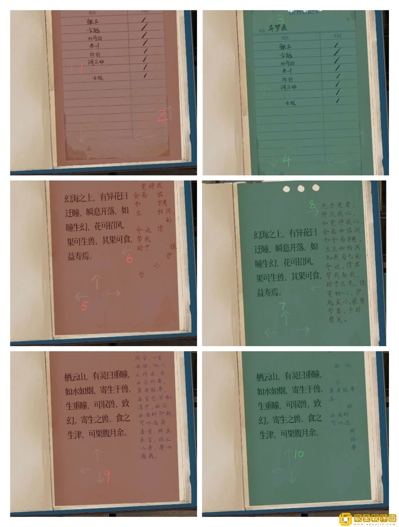 然后分别讲两张卡蒙上第一本书(忘记名字了)的前三页,获得方向密码:上上下下左左上右下上