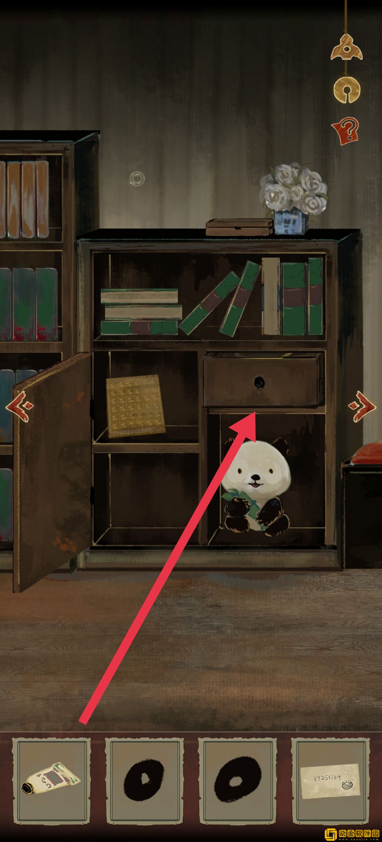 右上角的抽屉拿护手霜润滑一下,打开获得钥匙组件