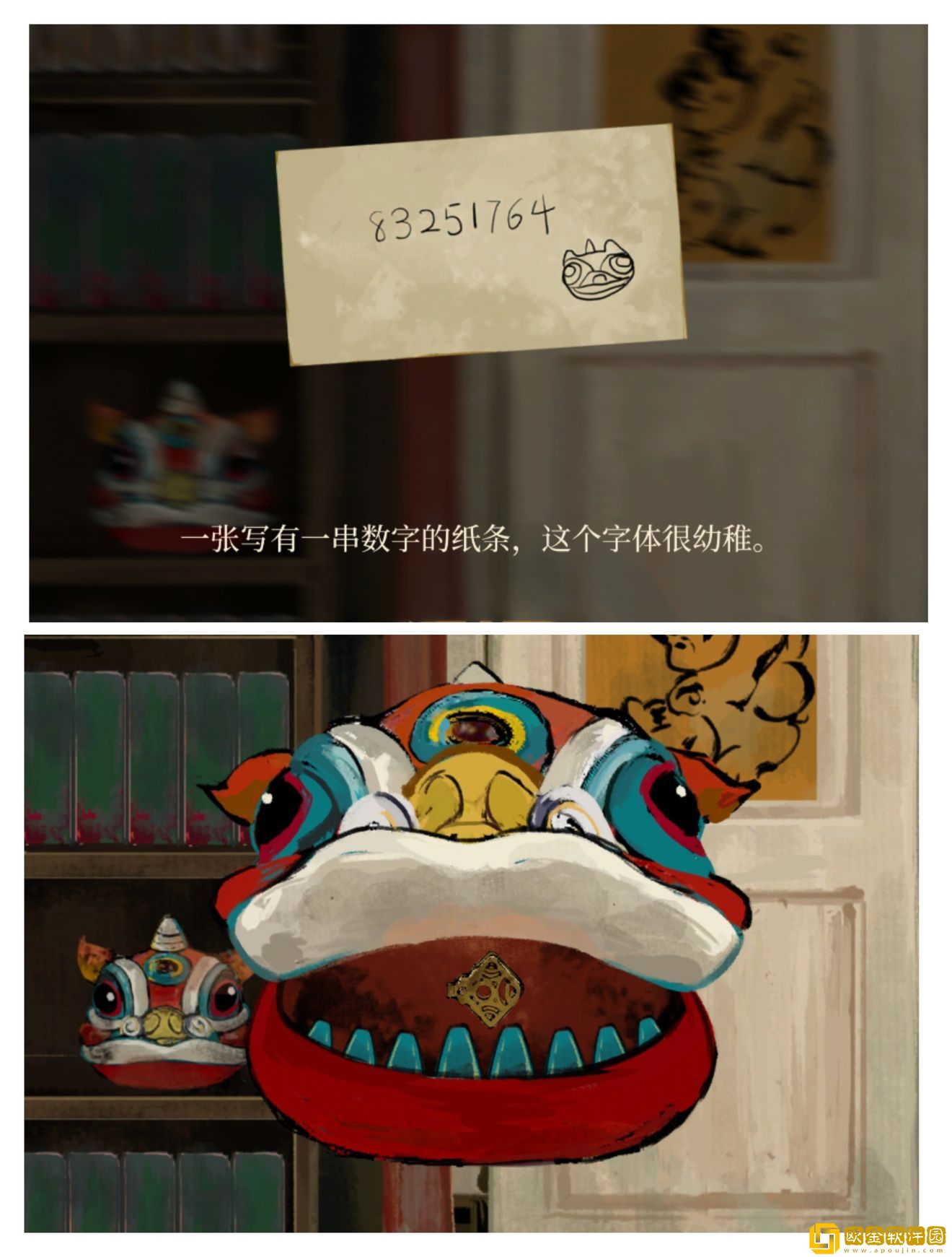 根据这个纸条去按那个年兽头的牙齿,获得另一个钥匙组件