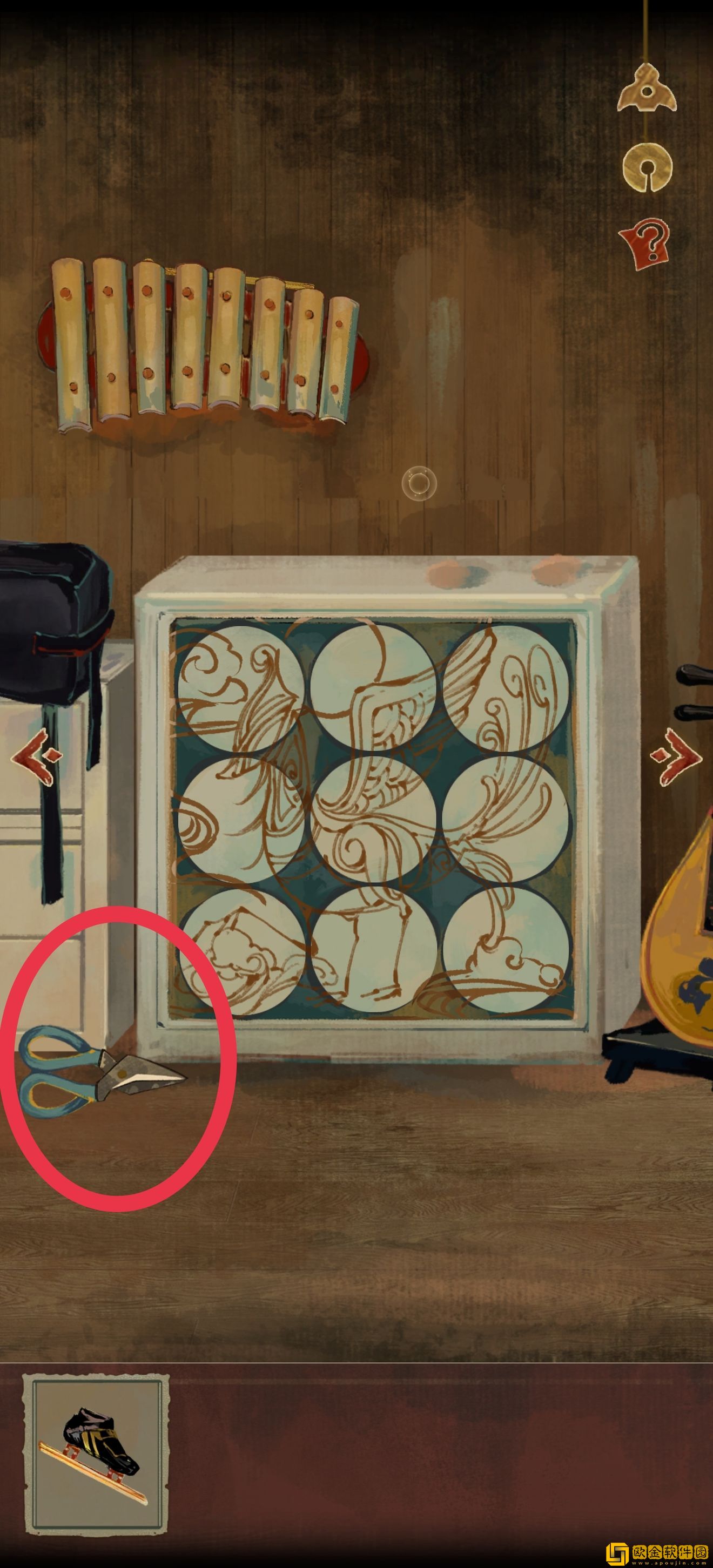 然后将锤子与木琴组合后,按35784的顺序敲击木琴,可以获得一把剪刀