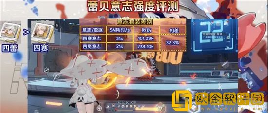 既然蕾贝的四件套效果是蕾贝专属的,那到底值不值得为了蕾贝去抽蕾贝的四件套呢,我们这里直接拿赛弥尔四件套进行对比,这里两套意志星级等级都是一样的,测试也同样用的团1的boss,测试中操作基本还原一致,测得图上结果: