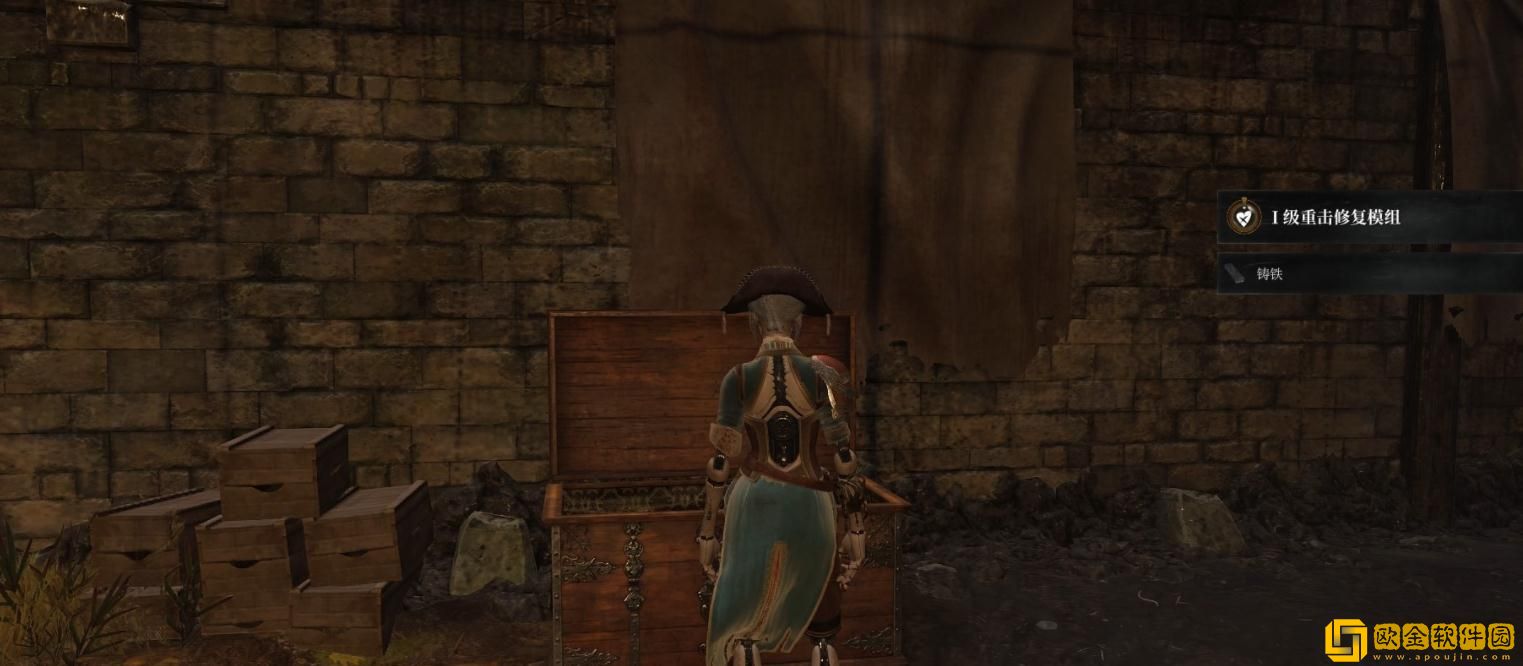 打开宝箱后可以获得Ⅰ级重击修复模组和1个铸铁。