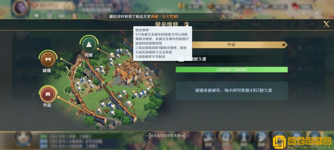 阿明的小tips:1、【壁垒】附近的防守方部队,战败溃逃后会进入最近的【壁垒】。2、修建的【壁垒】由三层城墙构成,每层城墙会独立计算耐久度。当有城墙被完全破坏后,只能通过消耗策略点进行维修,被部分破坏的城墙,则只能随时间缓慢恢复耐久。3、防守方部队进入【壁垒】补充兵力需要消耗主城预备兵,并且需要等待一定时间,期间部队无法离开【壁垒】。4、联盟每天都会获得一定的策略点,策略点有累积上限,超过上限之后不再增加。