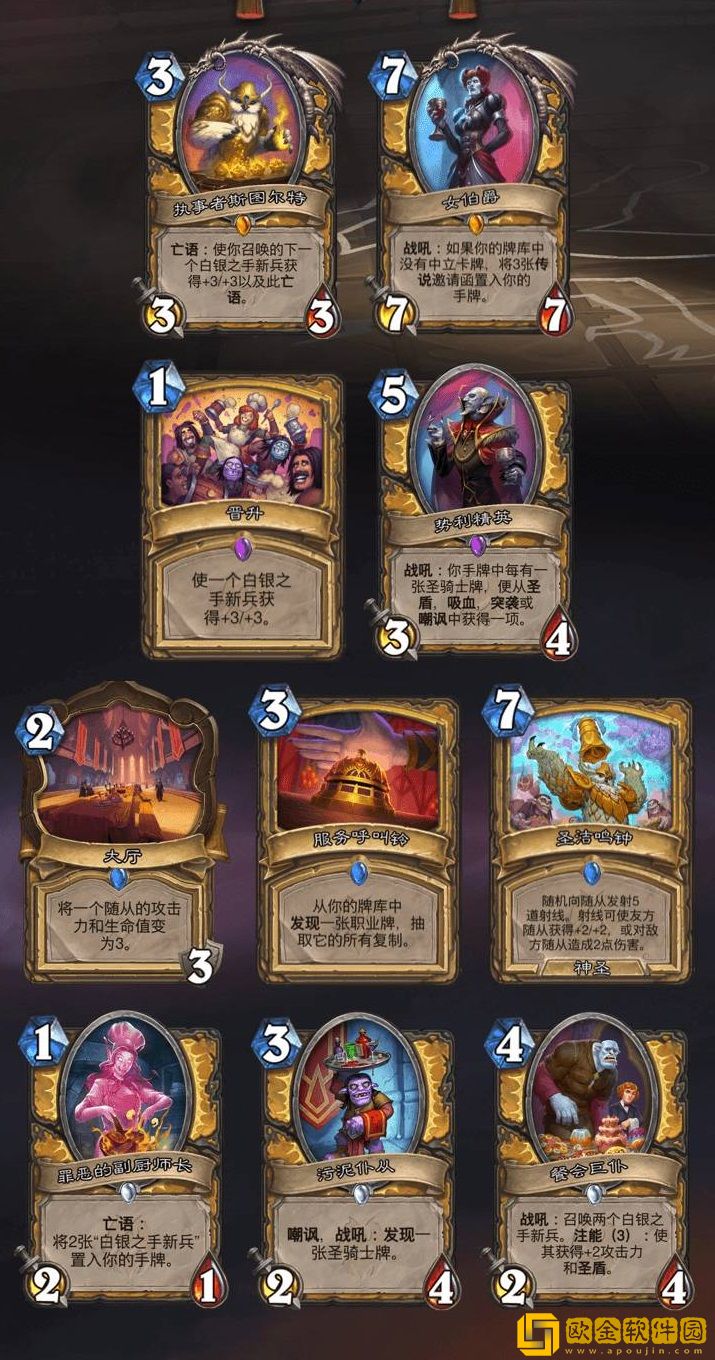 纳斯利亚堡的悬案是炉石传说在8月3日凌晨1:00正式开启的新版本,那么当前版本圣骑士的标准模式推荐卡组有哪些呢?接下来就让我们一起了解一下炉石传说新版本骑士卡组推荐吧。
