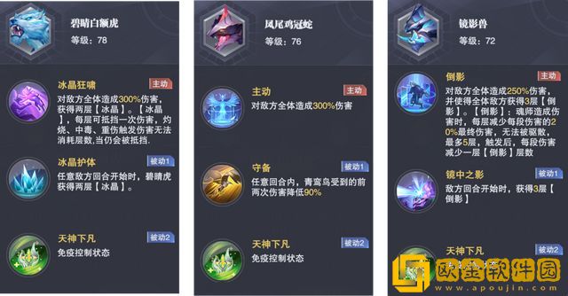 【风啸之意】:普攻与多段攻击的增伤buff【冰魄之意】:核心单段攻击的增伤buff,且提升100%命中【寒风之意】:多个敌人存在时的增伤buff【凛雪之意】:普攻增伤buff