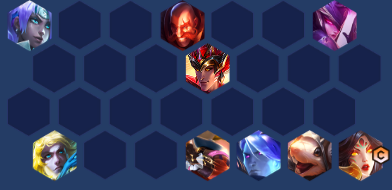 防止敌方婕拉控制住我们的主C霞故而把3个射手放到第二排防止主C霞被控制