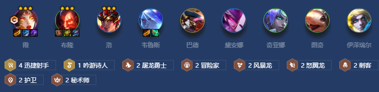 阵容优势就是全面琪亚娜和维鲁斯包括洛的控制可以让我们的输出环境非常好,2个刺客跳后排拉扯可以让我们的射手羁绊最大化攻速加成,比较怕神装的金龙土龙,如果场上没有狮子狗的话可以把夜之锋刃换成轻语。