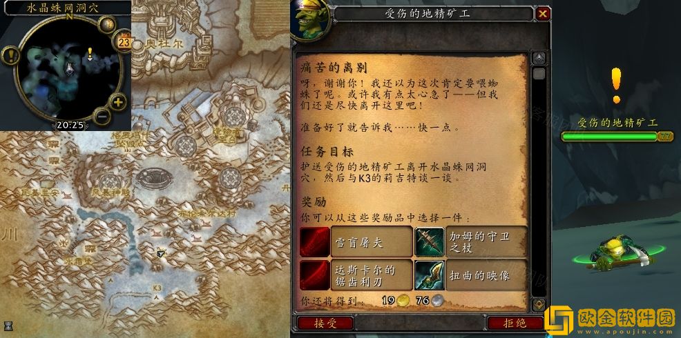 接取NPC:受伤的地精* 工(风暴峭壁,水晶蛛网洞穴)