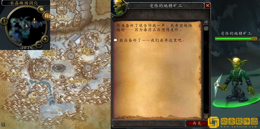 受伤的地精* 工在水晶蛛网洞穴内多处刷新。