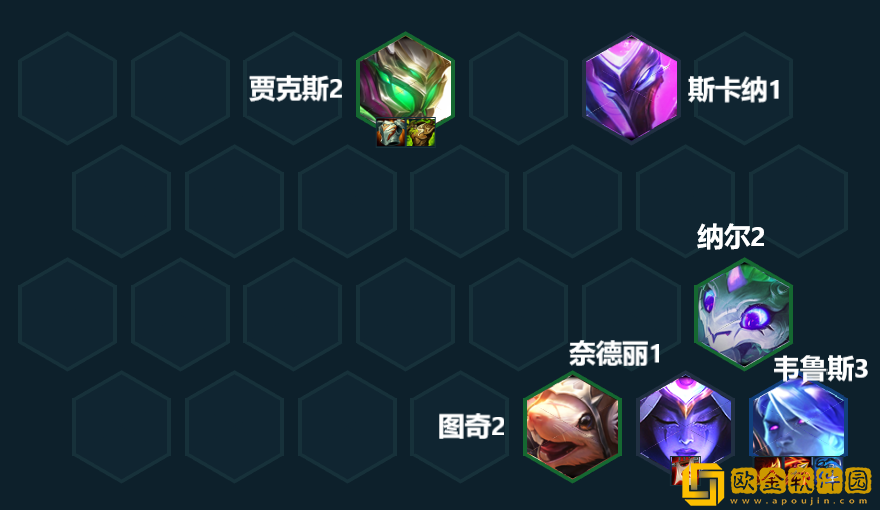推荐理由:最近大家都被神龙努努折磨到想卸载游戏,今天给大家推荐的阵容是能克制神龙努努的换型射手。四换形师羁绊能提供125%的最大生命值,配合上狂徒铠甲提供的1000点能让杰斯变得非常肉,直接崩碎神龙努努的大板牙!还有人马+杰斯+龙女+韦鲁斯的四重控制链,可以说是努努克星也不为过!