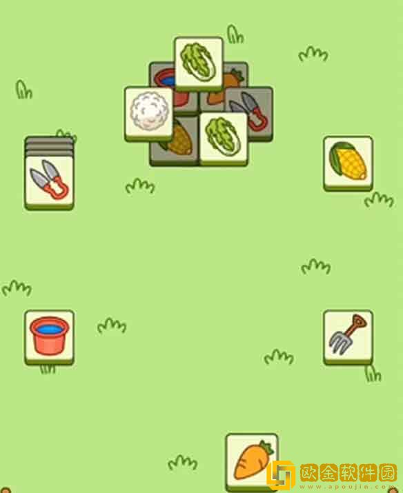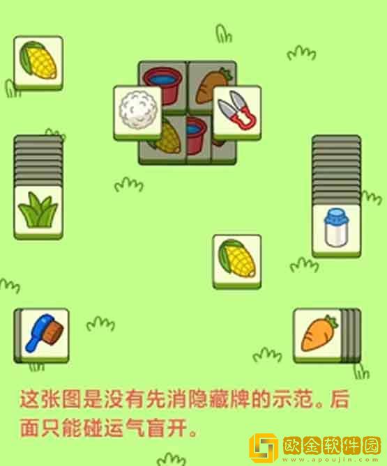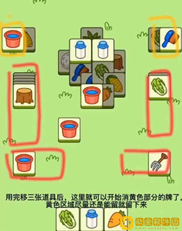 2.下图所示黄色三角形这两张底部的* 先留着不要消。(水桶和玉米这两张* )
