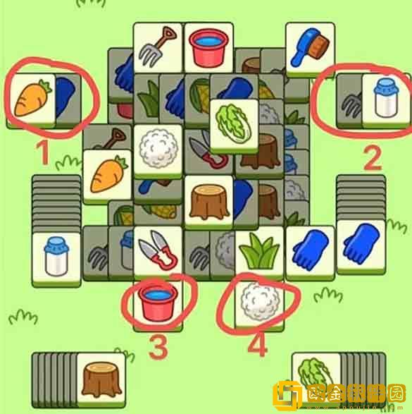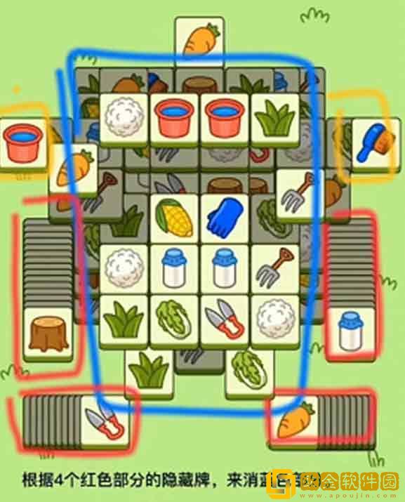 1.下图根据4个红色部分的隐藏* ,来消蓝色部分分。黄色部分一定一定要留到最后(4张* 桶,玉米,刷子,白菜)