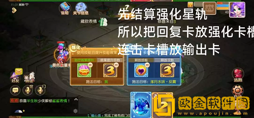 7、先结算强化星轨,所以把回复卡放强化卡槽,连击卡槽放输出卡。