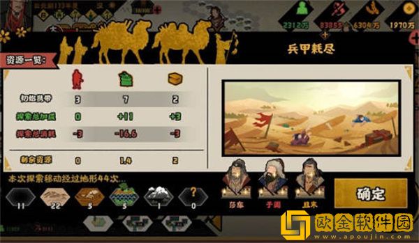1城市都是固定的范围的,随机的位置,遗迹都是一样的,地图的东边,就是在玉门关的北边固定刷一个蝎群护宝,可以用2随行兵甲换二十西域全局影响力;