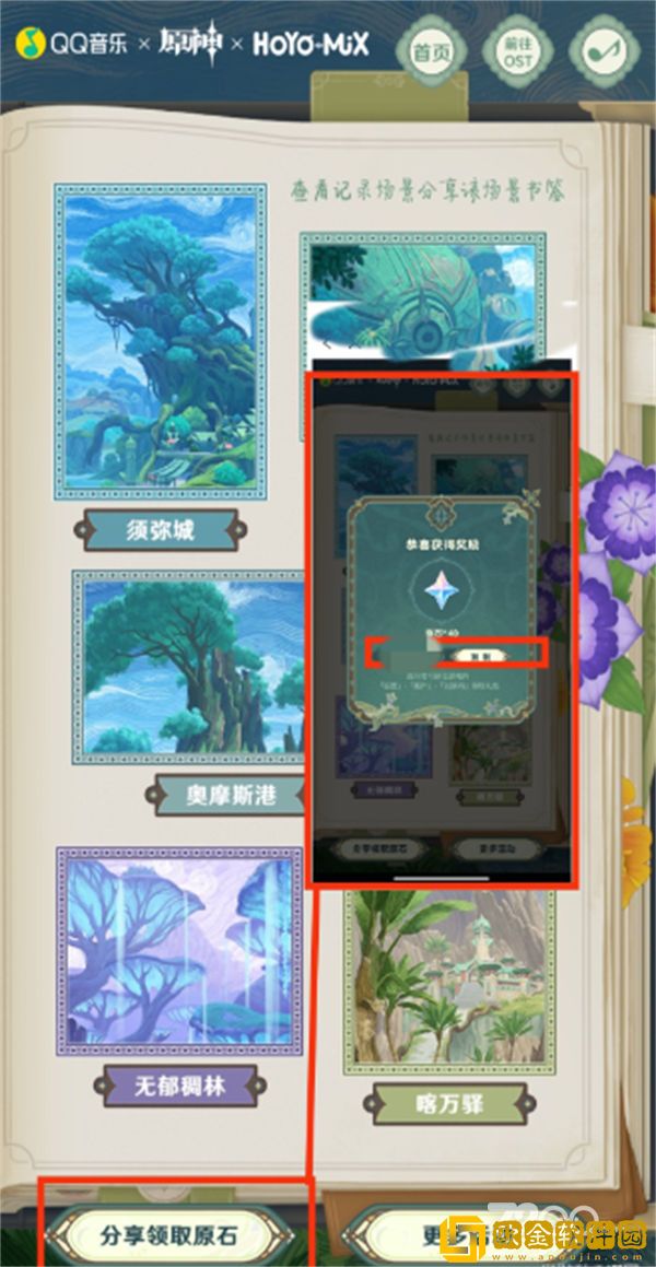 分享活动,复制原石兑换码,在游戏中【设置】——【账户】——【兑换码】中兑换即可