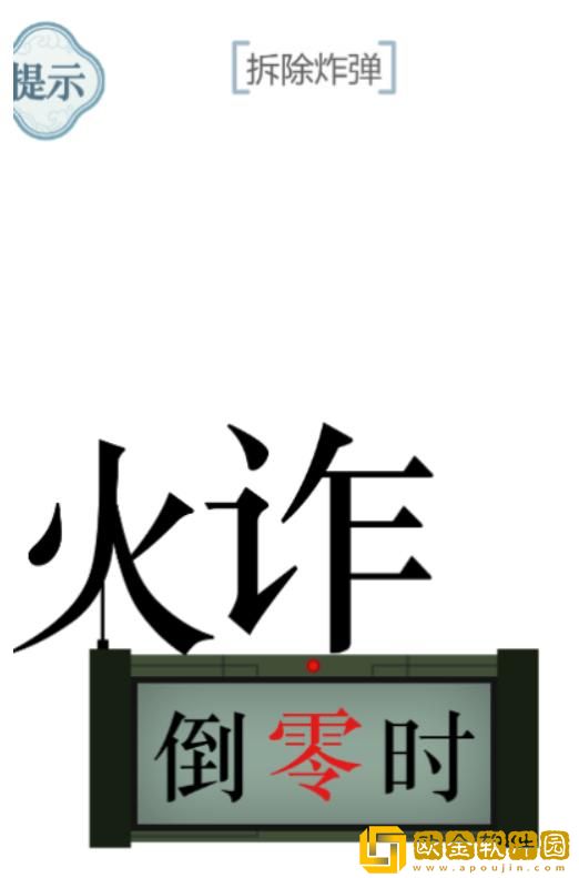 2、然后需要将【炸】字的【火】往左拉开,再将上面【计】字的言字旁向左拉开,这是炸弹就会开始倒计时。