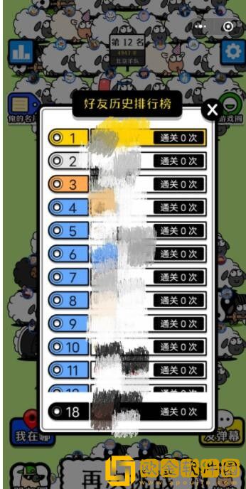 3。点击“历史排行榜”之后,就会弹出自己以及玩过羊了个羊的微信好友的通关次数。