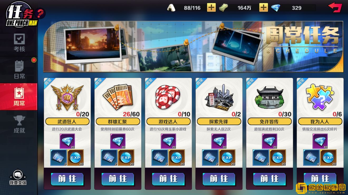 周常任务相对难完成一些,主要是一些活动玩法的累计参加次数。介于其中有一些活动的解锁对人物等级有一定要求,所以游戏刚开始一两天不一定能参加到。