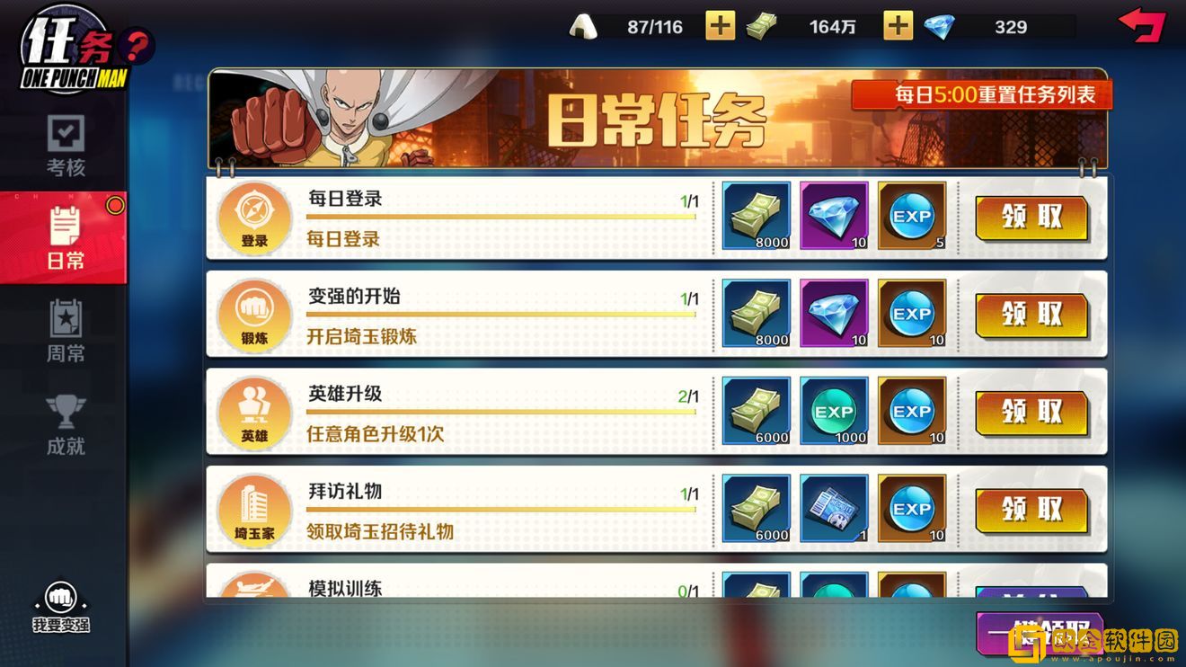 平时人物等级的提升主要靠日常,这里的任务比较容易完成,而且每天凌晨5点都会刷新。