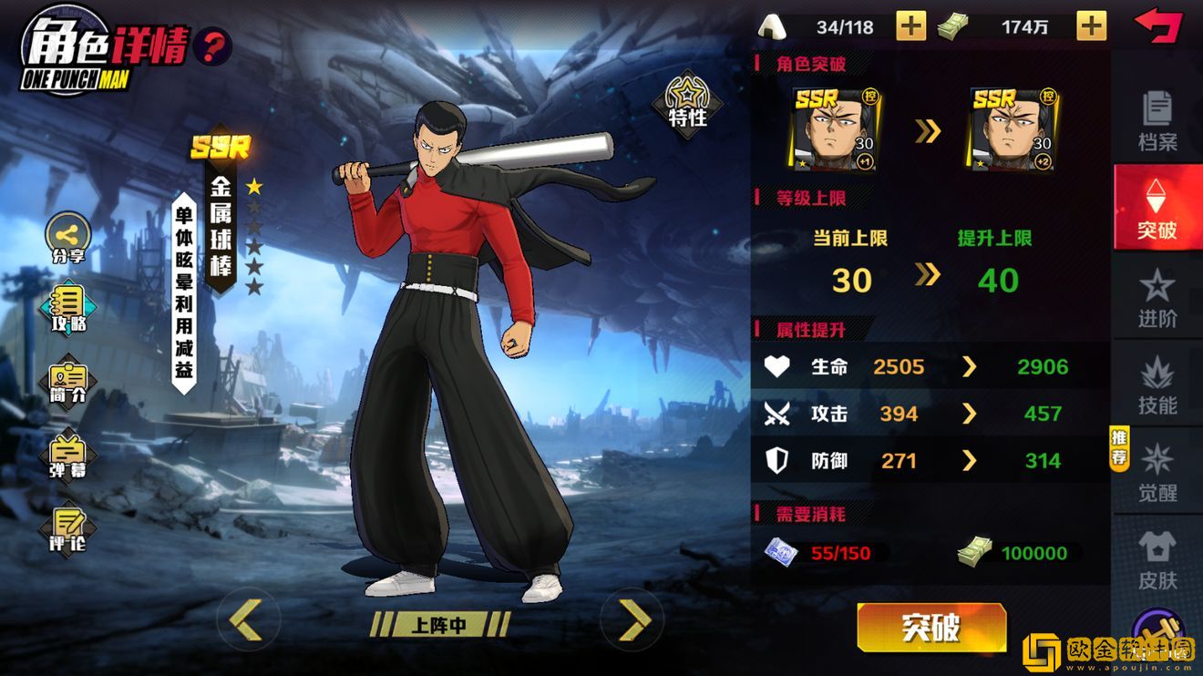 当一名英雄的等级升至上限后,我们可以使用相应的材料进行突破,突破完成后即可返回继续升级。