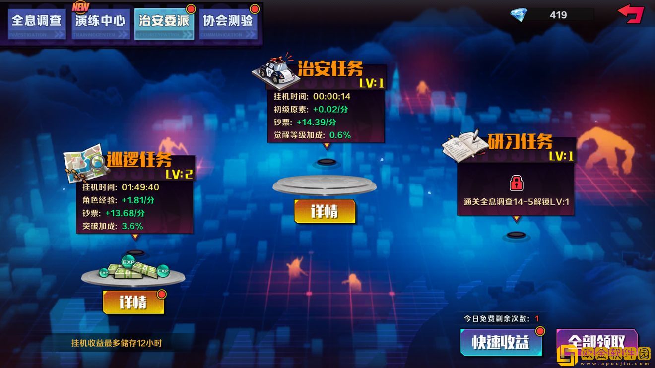 参与全系调查的战斗,不管是首通之后还是后续的扫荡,每参加一次,都可以获得人物的经验奖励。但扫荡时尽可能根据你所需要的材料,去选择需要扫荡的副本,毕竟每次都要消耗体力,物尽其用最好。