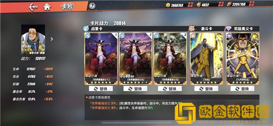 卡片1号位一定要优先升满,因为提供攻击力加成,激斗卡也提供攻击加成,同样优先升满。卡片两件套即可解锁套装攻击效果,不必强求三件套。前期可以优先升满一张1号位,谁上场就给谁带上。