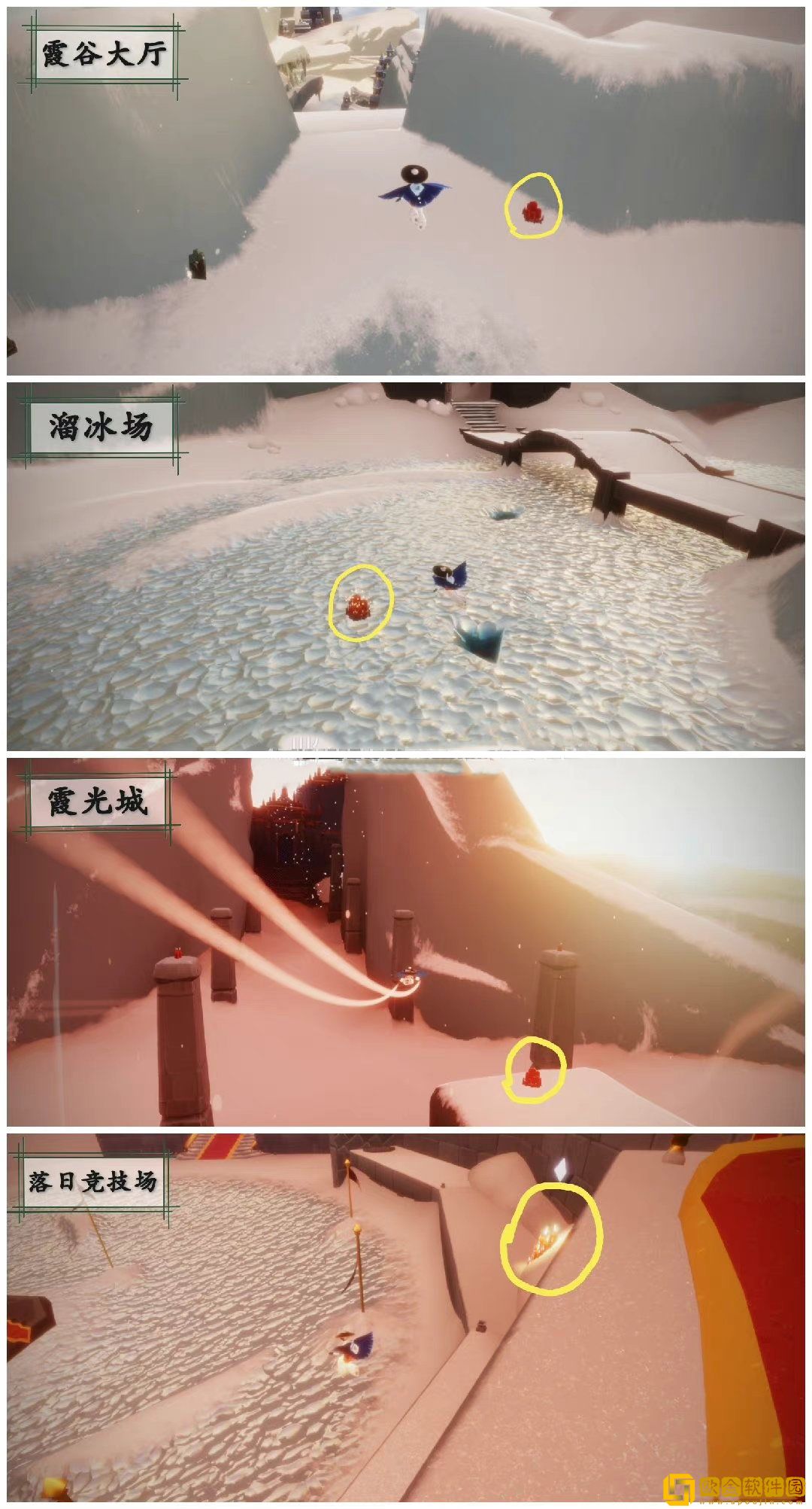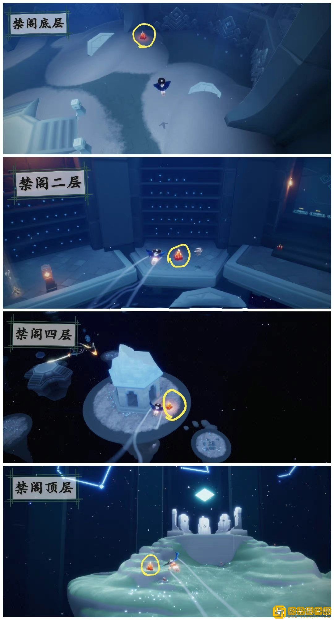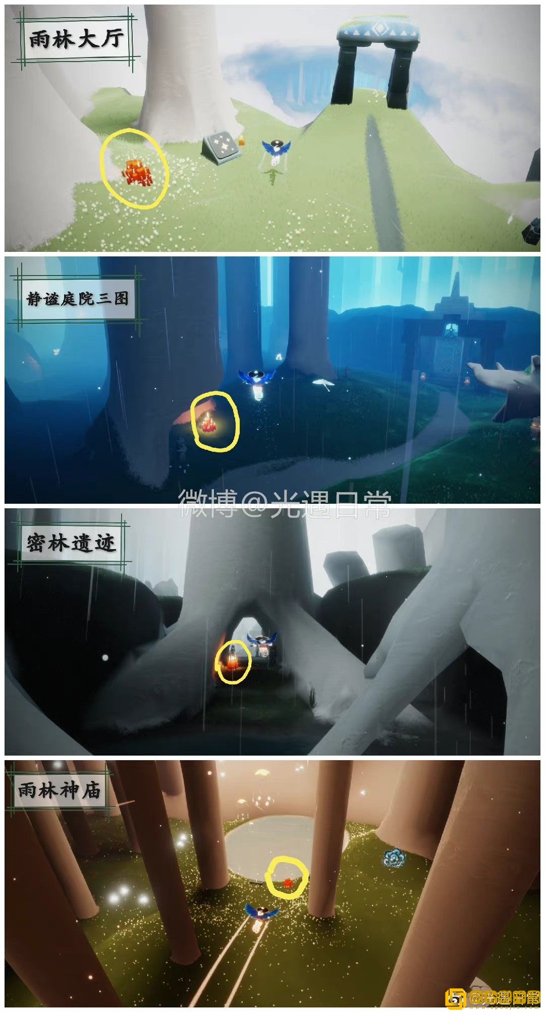 今日大蜡烛分布在雨林、霞谷、暮土、禁阁,以下是位置参考: