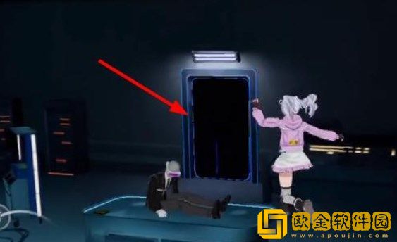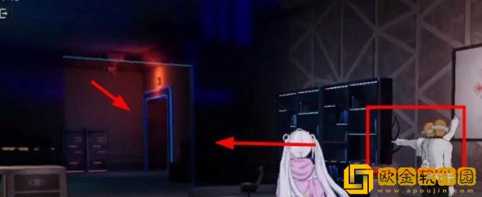 3、等剧情结束以后,我们随着房间内机器人的手势,前往箭头所指的房间。