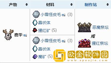 我们可以制作鹿华(Deer Thing),并在夜晚的雪地中使用来召唤鹿角怪。鹿华制作配方如下: