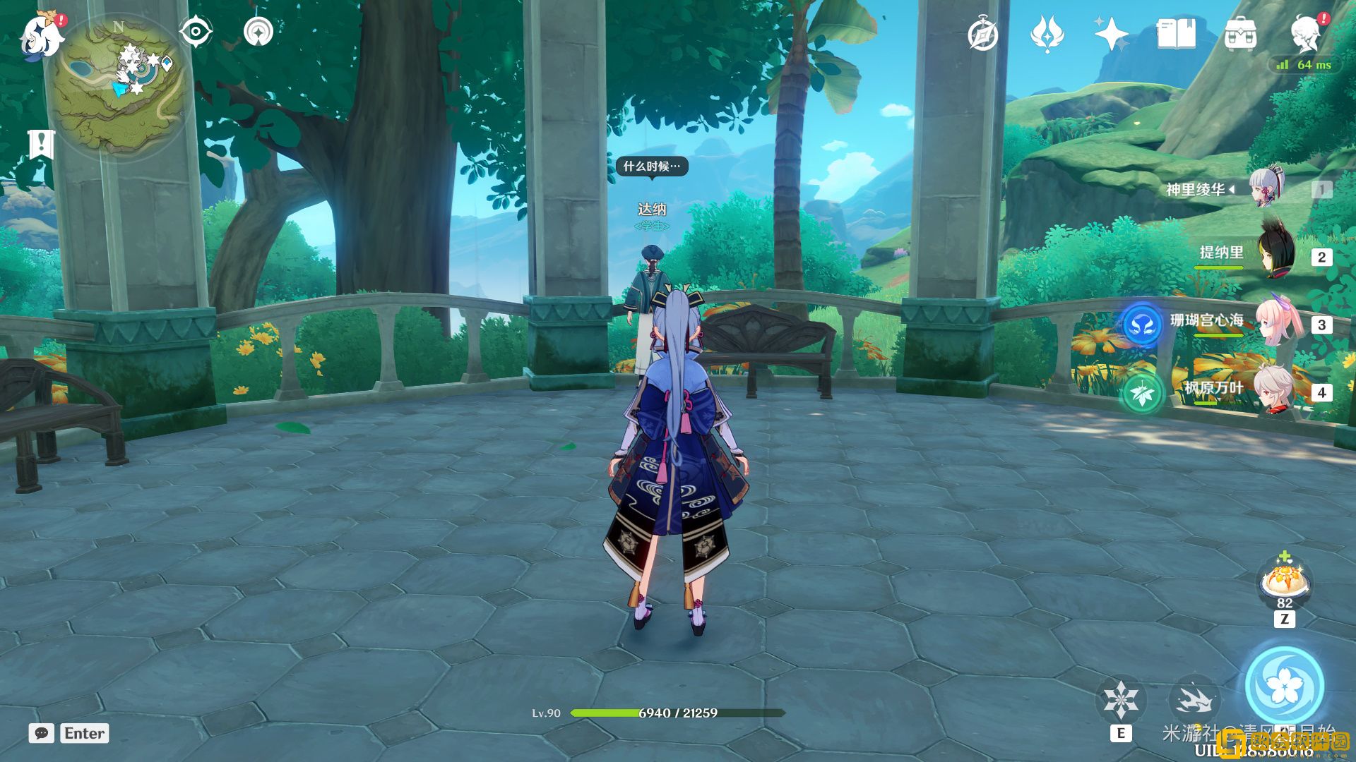 位置为禅那园的凉亭,和达纳对话可获得4个
