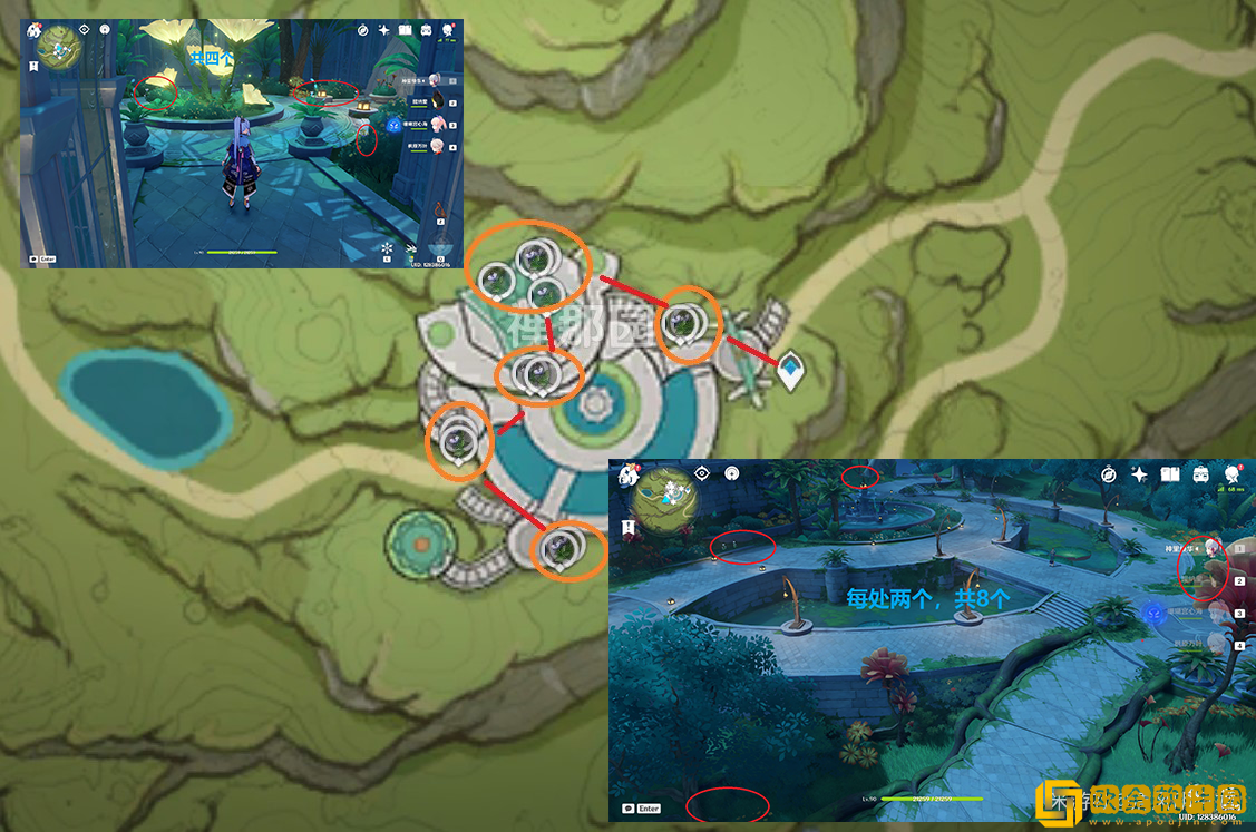 2.禅那园,可以采集12个(PS:后面的对话还可以获得4个,这里未统计)