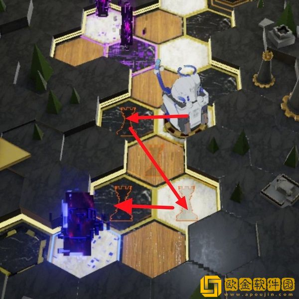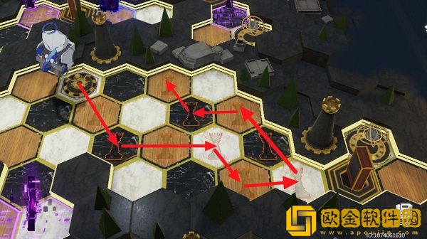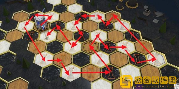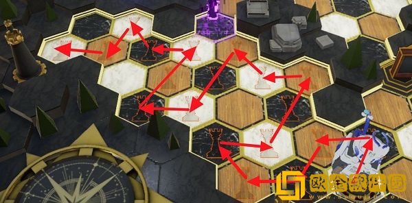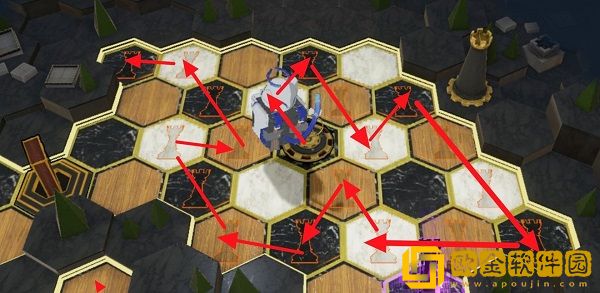 此章只有一处解谜,但也可以从终点逆向走。不过前提是要先把凸起的棋盘落下!