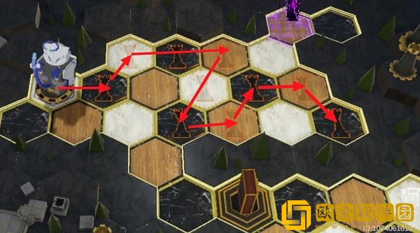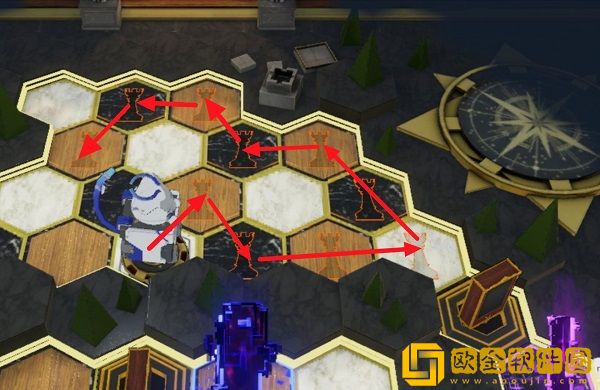 首先要在圈出来的地方使用机关使凸起的棋盘落下,才能开始正式的解谜。